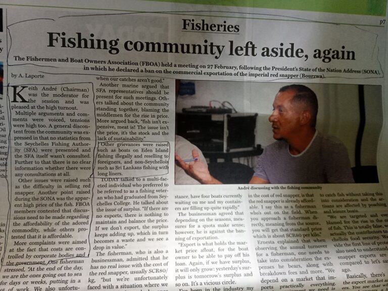 Latest News Fishing community holds meeting on Bourzwa ban March 2, 2020 by Nature Seychelles Blue Economy